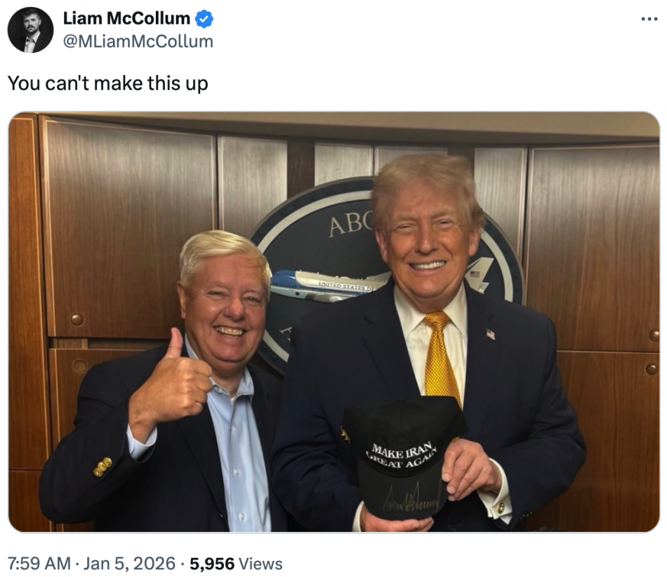 #10 A photo of President Trump holding a hat that says “make Iran great again” while standing next to U.S. Senator Lindsey Graham is causing a great deal of controversy all over social media…
