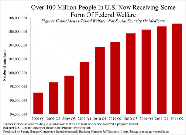 There are more Americans dependent on the federal government than ever before in U.S. history. According to the Survey of Income and Program Participation conducted by the U.S. Census, well over 100 million Americans are enrolled in at least one welfare program run by the federal government. Many are enrolled in more than one. That is about a third of the entire population of the country. Sadly, that figure does not even include Social Security or Medicare. Today the federal government runs almost 80 different “means-tested welfare programs”, and almost all of those programs have experienced substantial growth in recent years. Yes, we will always need a “safety net” for those that cannot take care of themselves, but it is absolutely ridiculous that the federal government is financially supporting one-third of all Americans. How much farther do things really need to go before we finally admit that we have become a socialist nation? At the rate we are going, it will not be too long before half the nation is on welfare. Unfortunately, we will likely never get to that point because the gigantic debt that we are currently running up will probably destroy our financial system before that ever happens.