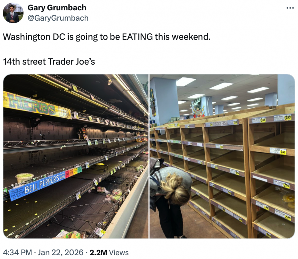 #12 Over the past couple of days we have witnessed voracious “panic buying” throughout much of the nation.  For example, just check out what the shelves look like at a Trader Joe’s location in Washington D.C. right now…