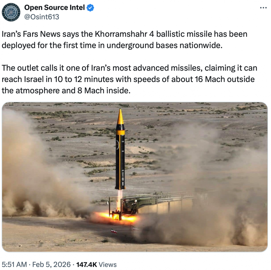 We are being told that it is so fast that it can travel from Iran to Israel in about 10 minutes…